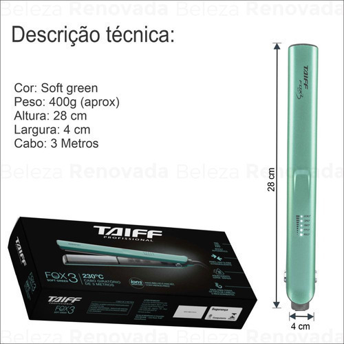 Design e tecnologia em um só produto. A Chapa Fox Íon 3 possui 5 temperaturas de 150°C a 230°C.